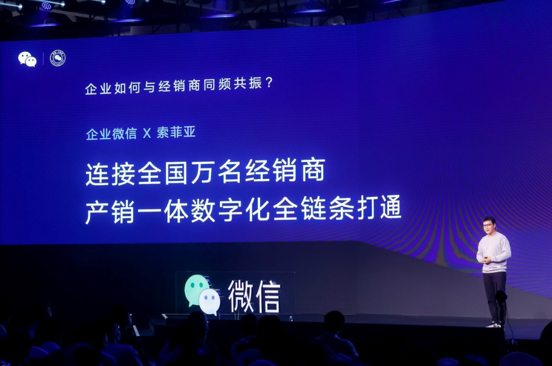 其次是连接带来信任,实现上下游、经销商的联动。全屋定制家居企业索菲亚在全国拥有7个工厂,5万多名上下游员工。为实现员工之间的高效协同,索菲亚用企业微信作为全端协同管理平台,统筹并协同前后端工作,整个生产、装配链路清晰可查,顾客需求可以得到最快的响应和最大的满足。