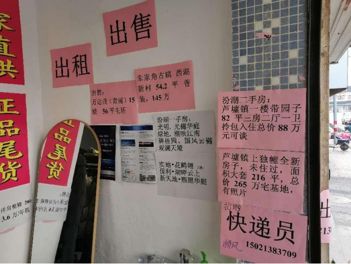 (青浦区朱家角镇的沿街店面,有的也兼具房屋中介功能)