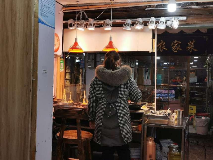 (一位忙碌的女店主背影,口音听起来像是湖南人)