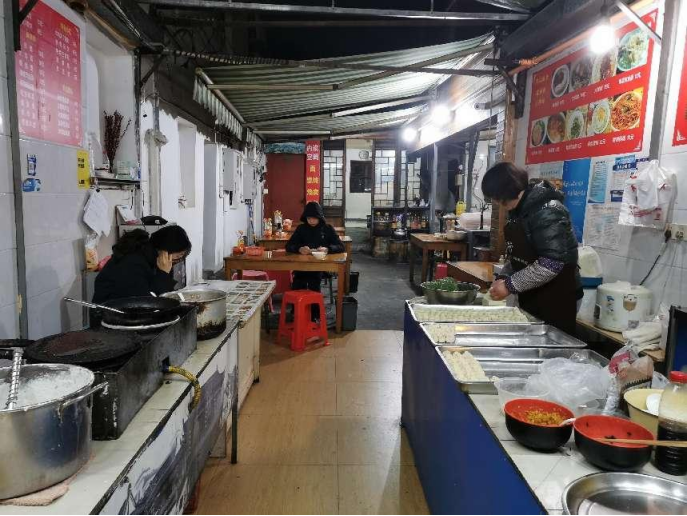 她介绍,小店客满的辰光也常有。店里卖的有馄饨、小笼馒头(即小笼包)、甜豆腐、辣豆腐、各式面条等等。