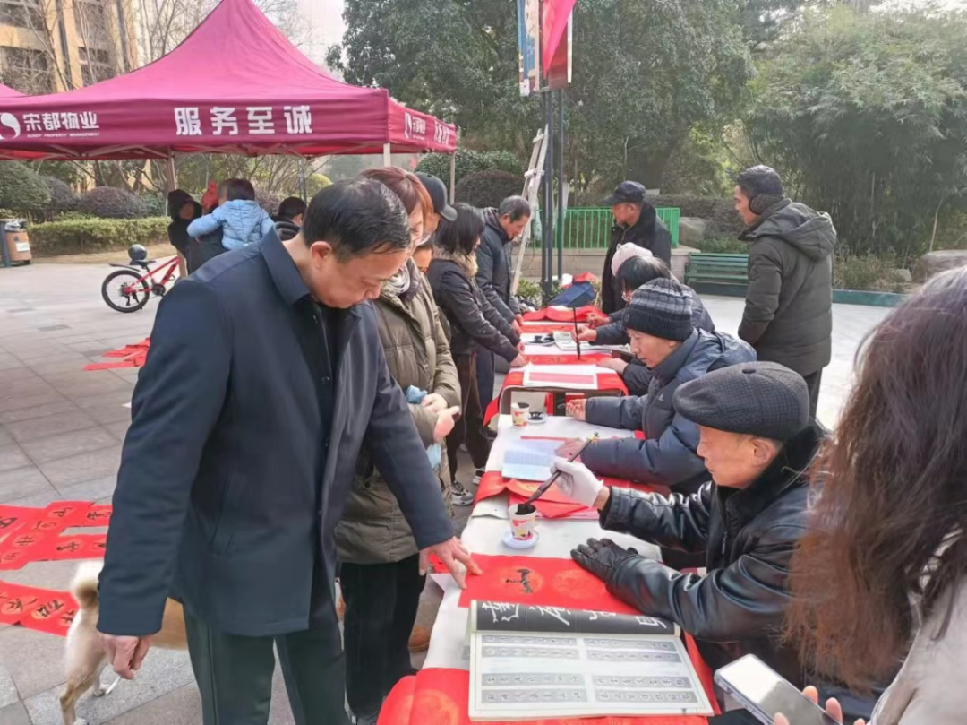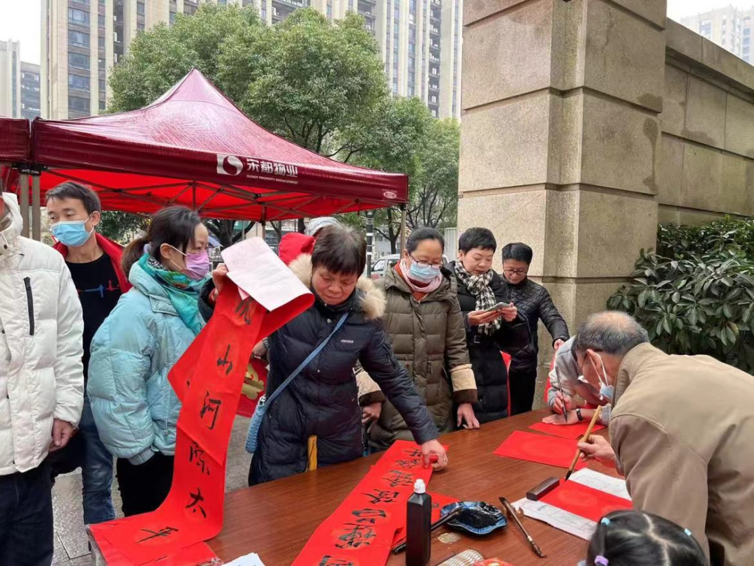 宋都服务还邀请了十余位书法协会的老师,在园区内为业主书写春联。“红红春联,浓浓墨香”,前来领取春联的业主络绎不绝,大家脸上的喜悦之情溢于言表。