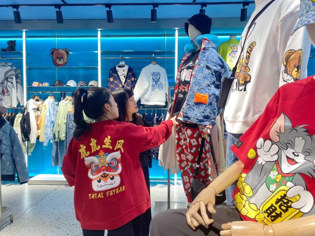 春节期间,商场为消费者准备了逐级赠礼等大力度优惠活动,各品牌商户准备了年货商品,带有老虎图样的首饰、红色新年服饰等商品年味十足。