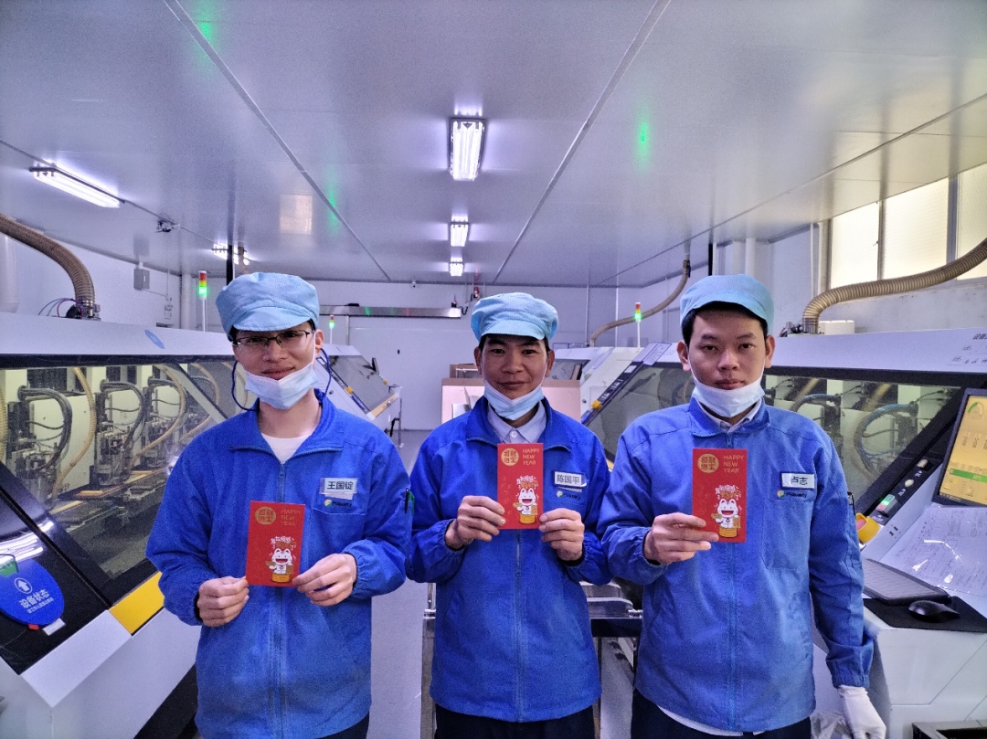 为满足客户快速增长的订单需求,春节期间,富仕电子生产部门虽然放假三天进行设备维护保养,但仍安排部分产线和人员随时响应客户的紧急订单。