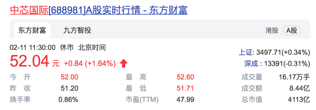 中芯国际AH股早盘均受到市场的热烈追捧,双双放量高开高走,A股盘中一度上涨近3%,连续第6个交易日上涨,开盘仅半小时的成交就超过昨日全天成交;H股盘中更是大涨逾4%,创近2个月来新高,开盘半小时成交亦超过昨日全天成交。