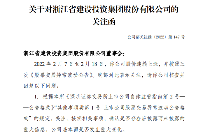 今天,10天9板的浙江建投终于被重点监控,公司还收到交易所关注函。