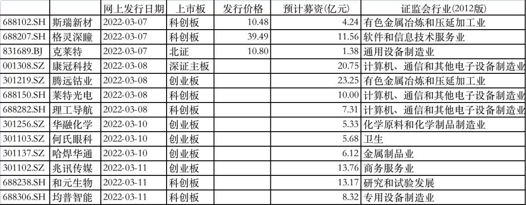 据目前安排,若无变化(3月7日到3月11日)共有13只新股将开启申购,包括创业板5只、科创板6只、深市主板1只、北交所1只。