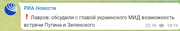 据俄新社10日报道,俄罗斯外长拉夫罗夫称,他与乌克兰外长库列巴讨论了俄罗斯总统普京与乌克兰总统泽连斯基会晤的可能性。