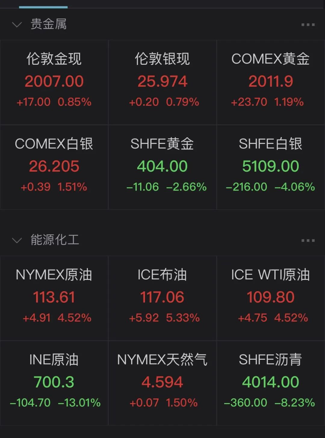 而商品期货方面,原油、贵金属等避险产品纷纷暴涨。