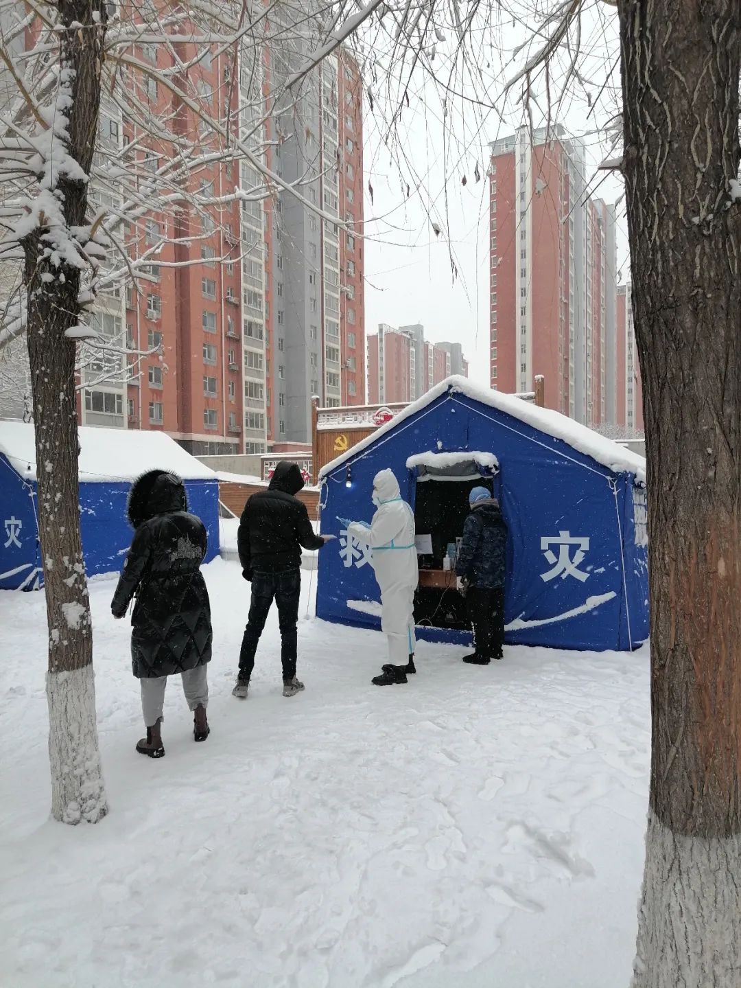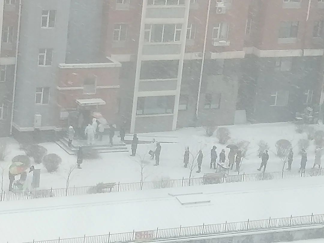 9点过后,长春的户外就已经开始飘起雪花,并且越下越大,到了下午15时左右,地面积雪的厚度已经达到7、8cm。寒风夹杂着雪花,正是在这样的天气情况下,“大白”们坚守着各自的岗位,居民们默默地排着队伍,完成了第四次核酸检测。