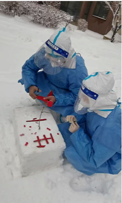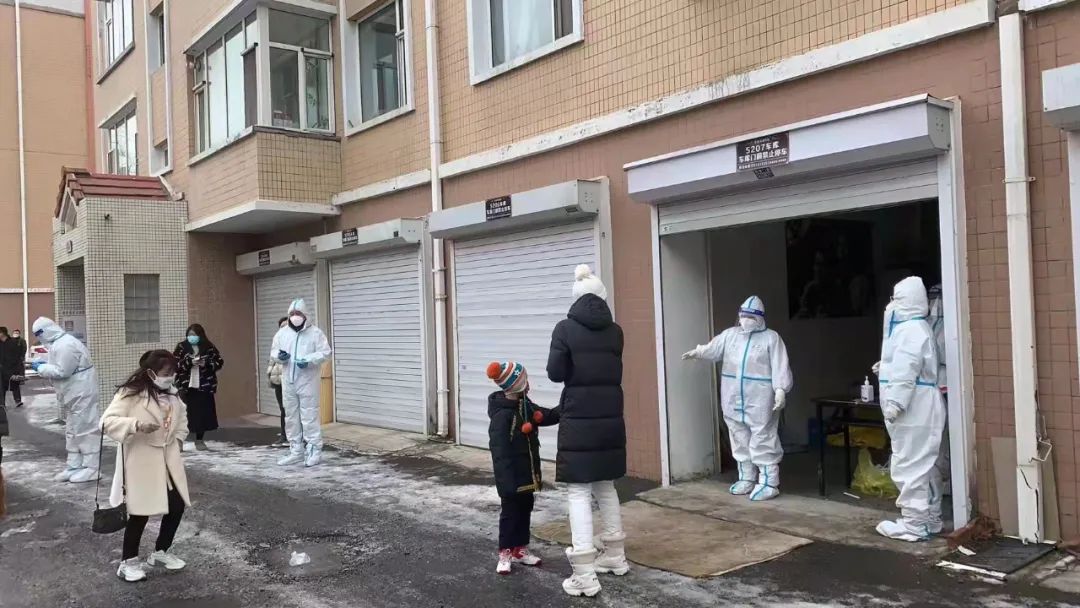 15日的长春风雪交加,户外温度低于0°c。在核酸检测点采样的医务人员,用酒精消毒过后,手很快就被冻僵。为此,有热心的居民自发地用矿泉水瓶装满热水送给这些医务人员,还有居民将自家的地上车库“贡献”出来,让医务人员在车库中完成采样。