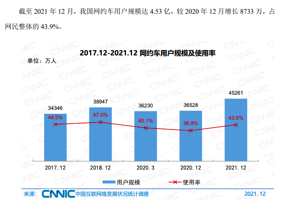 今年2月,中国互联网络信息中心发布的《第49次中国互联网络发展状况统计报告》指出,2021年,市场对出行业务信心增强,网约车行业新一轮融资热潮出现。此外,一些企业着力发展网约车业务,导致市场竞争加剧。