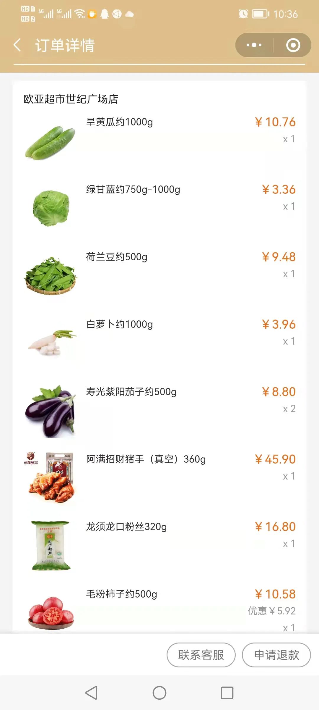 3月19日晚、3月20日上午,我先后通过欧亚集团旗下的欧亚到家线上配送系统下单,从附近的两家欧亚超市采购生活必需品,从价格来看,并没有出现大幅上涨。3月20日下午,我收到了3月20日上午采购的物品,不过截至到目前为止,3月19日晚下单的商品仍未收到。