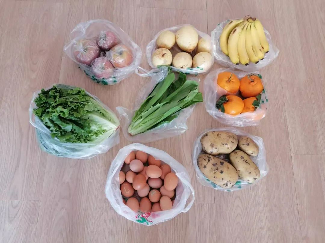 25日上午,生鲜配送群先后推出两组果蔬套餐,由于数量有限,每组限量10单,采取了先到先得的策略。幸运的是,我的妻子在第二组套餐公布之后,成功抢得其中一单,包括:鸡蛋26枚;油麦菜1棵;土豆3斤左右;生菜1棵、水晶梨6个;丑桔4个;山西富士4个;进口香蕉9根,共计100.3元。