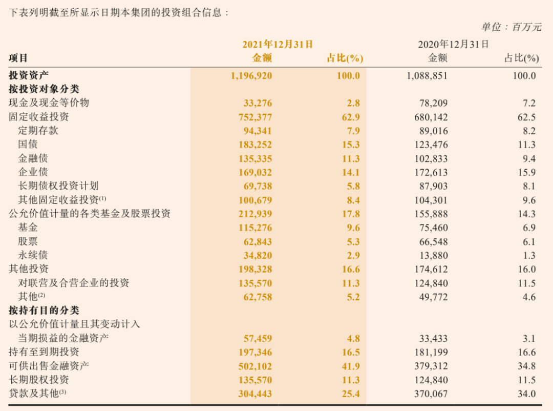 对于投资策略,人保在年报中称,2021年,面对低利率环境和权益市场震荡下行的不利影响,加强市场趋势研判,做好资产配置动态调整,构建战略与战术有效衔接的资产配置框架体系,积极防范投资风险。其中,债券投资抢抓长债配置时机拉长久期,不断缩小资产负债久期缺口;权益投资精选赛道,积极把握结构性投资机会,加强业绩对标和策略对标,同时积极开拓新的收益增长极,投资收益来源更为多元化。