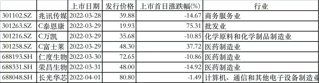 值得注意的是,本周破发的新股中,多只为医药生物公司,除创新药荣昌生物首日破发外,本周登陆科创板的RNA诊断第一股仁度生物(688193)首日同样收跌10.86%。