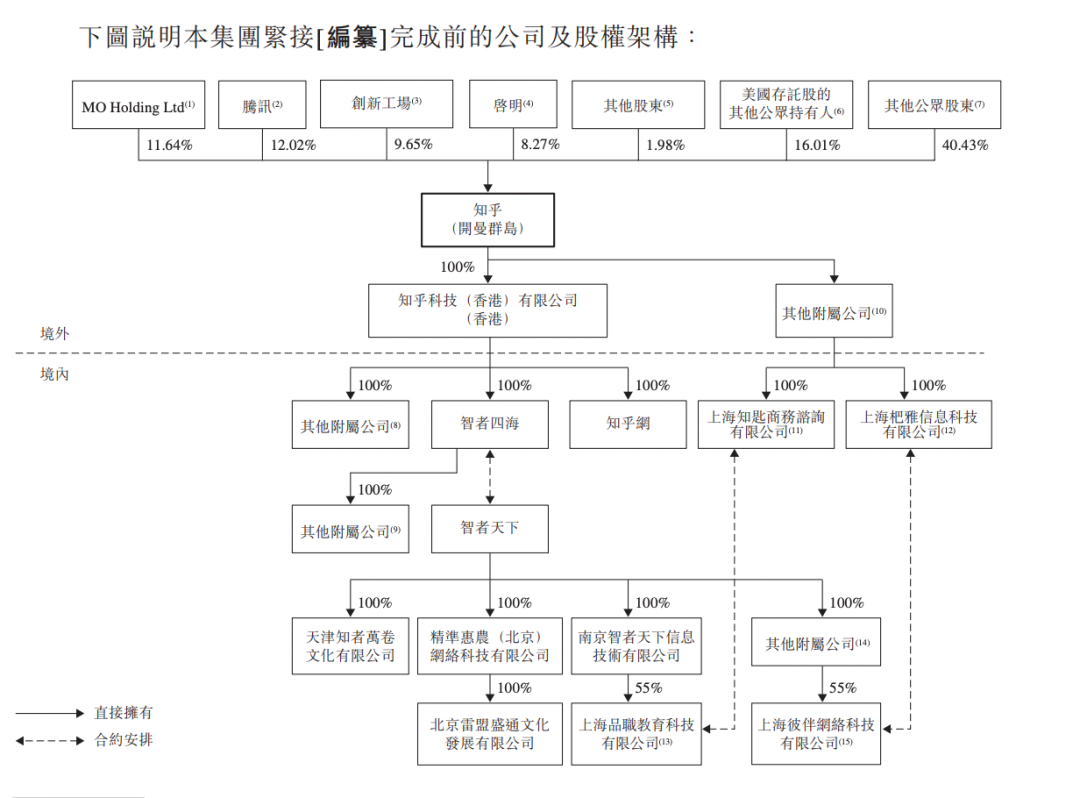 招股书显示,截至目前,知乎创始人、董事长周源持股11.64%,腾讯持股12.02%,创新工场持股9.65%,启明创投持股8.27%。