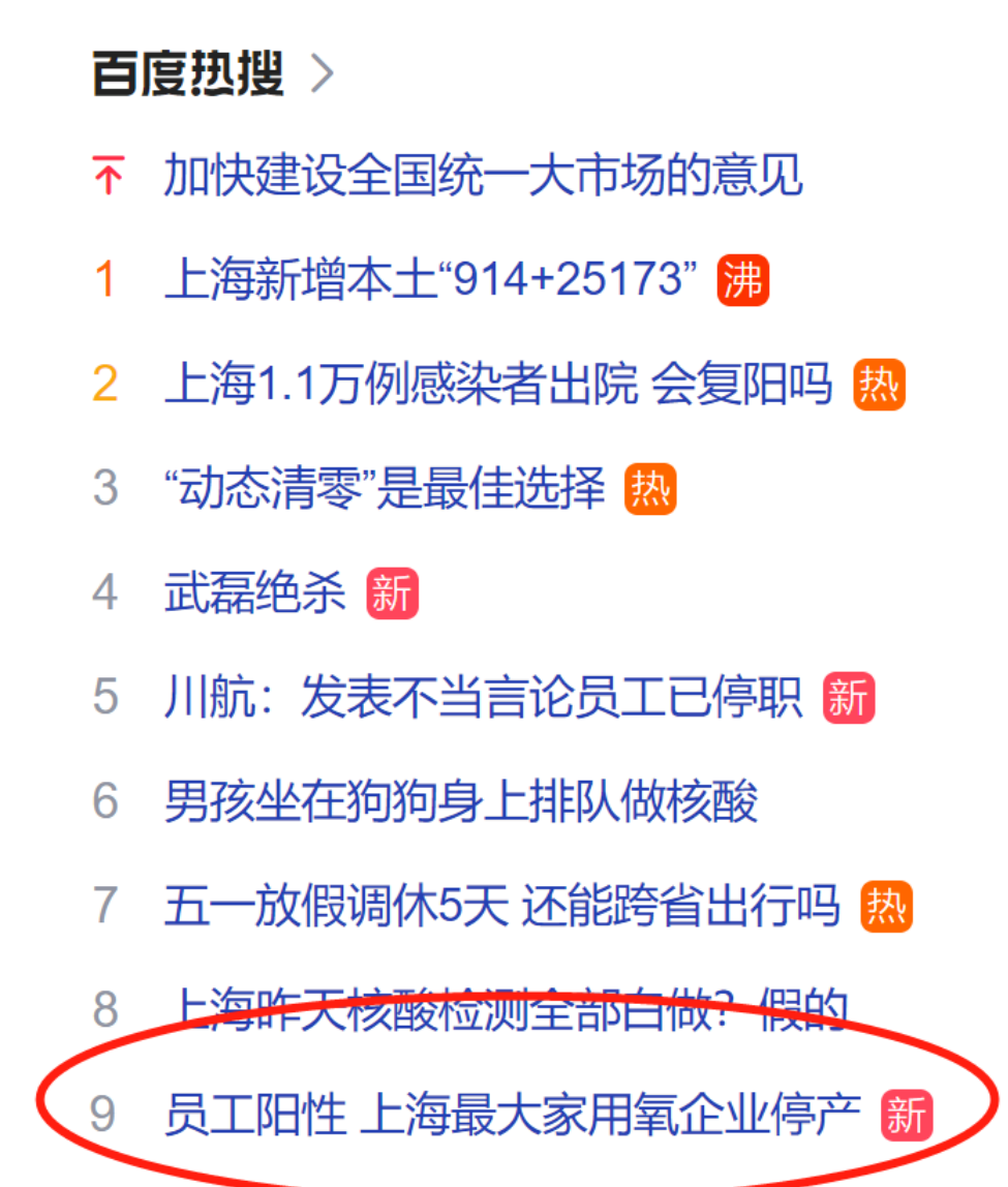 上海最大家用氧企业停产