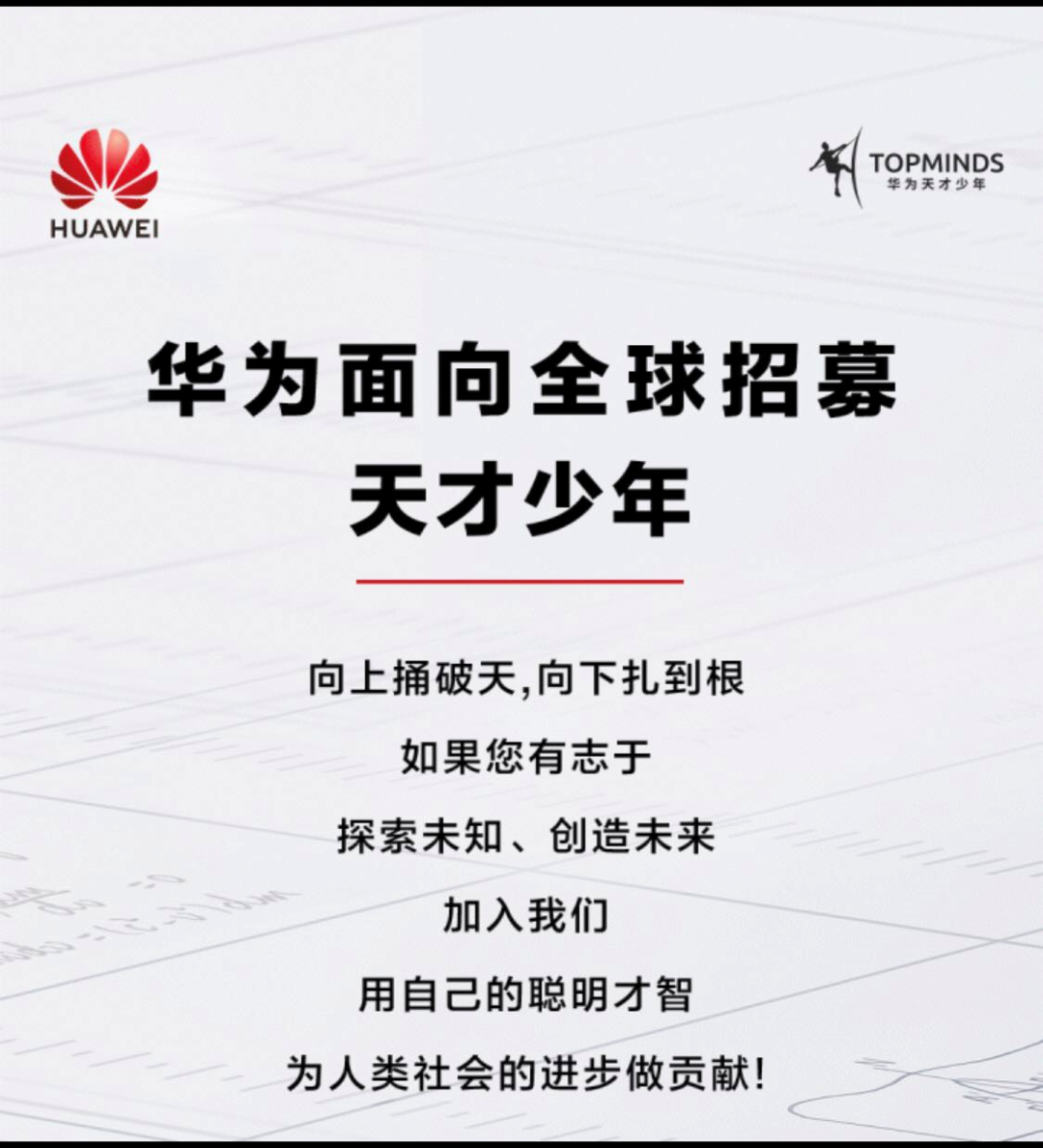 华为招聘微信公众号显示,近日华为启动了新一轮的“天才少年”招募计划。招聘信息显示,华为对应聘者不限学历,不限学校,但要求在数学、计算机、物理、材料、芯片、智能制造、化学等相关领域有特别建树并有志成为技术领军人物。