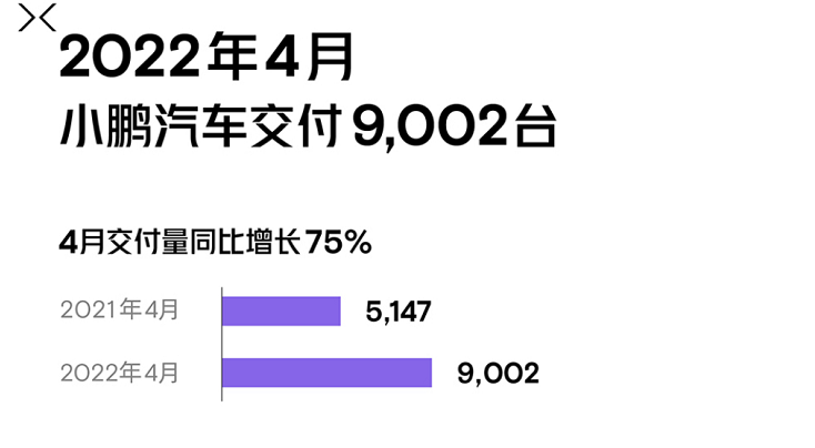 小鹏汽车4月交付量9002辆,同比增长75%,位列榜首。其中,小鹏P7交付3714辆;小鹏P5交付3564辆,小鹏G3系列交付1724辆。今年1-4月小鹏汽车累计交付43563台,同比增长136%。