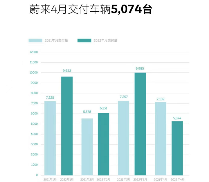 而据蔚来披露的数据显示,4月,公司交付新车5074辆,同比下滑28.56%,环比下滑49.18%。其中,蔚来ET74月交付693辆。