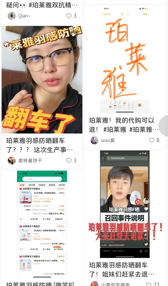 另一位有着1900万粉丝的男博主也表示,“所有购买了珀莱雅羽感防晒的用户无论是否用过、无论购买时间、无论批次都可凭订单号办理退货。”他介绍,这是一次严重的生产事故,有一批羽感的料体做好了,但包装的生产没跟上,导致料体多放了几天后产生了上下分层,包装时又没有搅匀,在品牌自查中存在多批次不稳定、不均匀的问题,为了保障消费者的权益,品牌决定全批次召回。