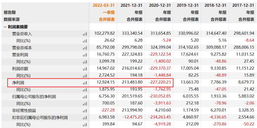 其营业收入从2001年的5.86亿元一路增长至2020年的31.37亿元。然而,2020年江苏澄星的净利润却出现了巨亏,亏损达22.7亿元。