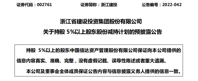 浙江建投的二级市场成交量不大,中国信达的顶格减持量约为其近34个交易日的总交易量。不过,中国信达此次减持将通过集中竞价减持,对二级市场影响相对较小。