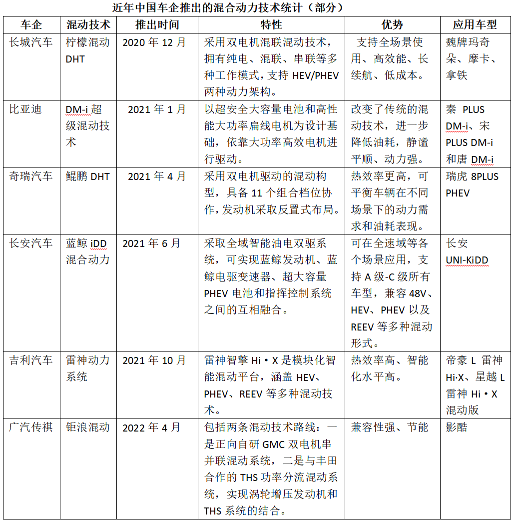 近年来,随着国内各项支持混合动力汽车政策的推出和落地,自主车企集体加大了在混合动力领域的技术投入。