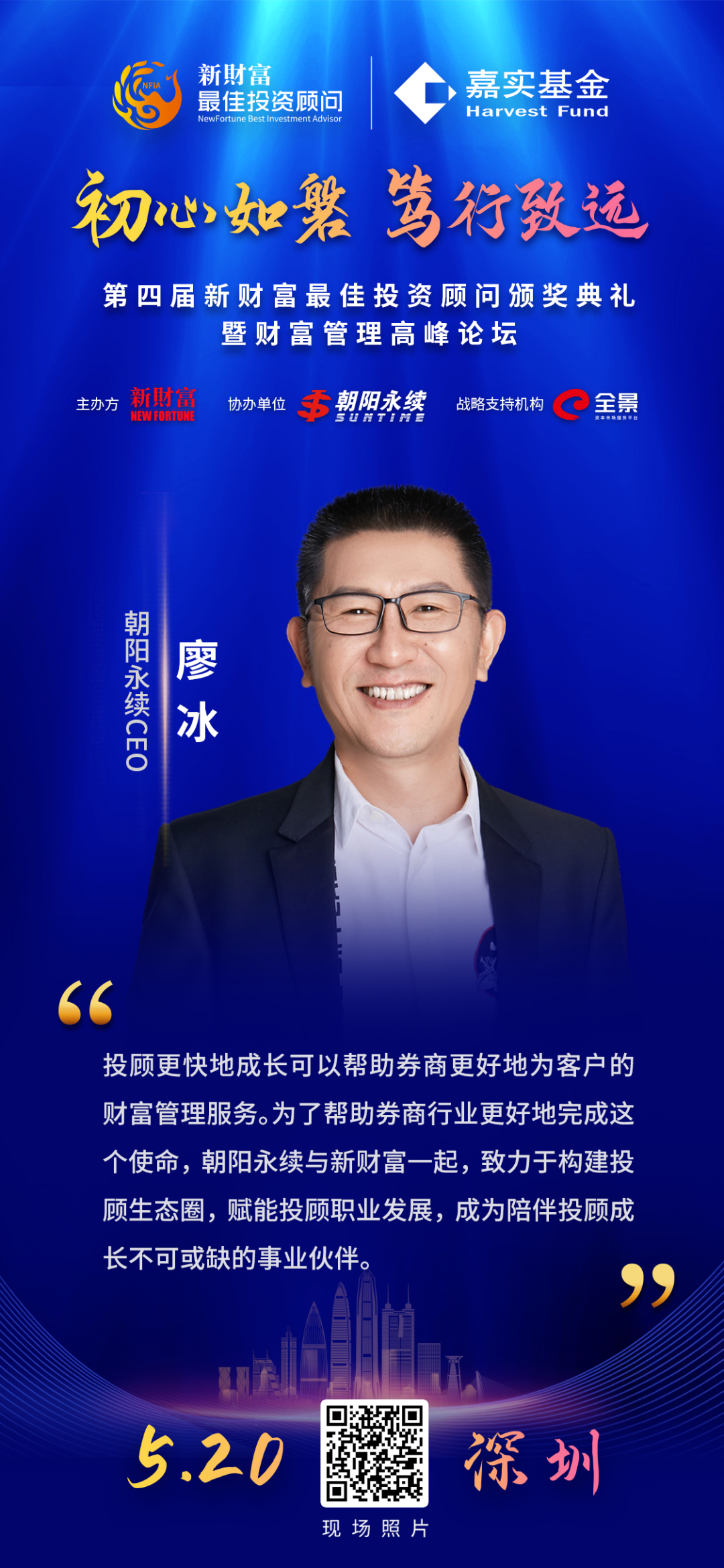 廖冰表示,投顾更快地成长可以帮助券商更好地为客户的财富管理服务。为了帮助券商行业更好地完成这个使命,朝阳永续与新财富一起,致力于构建投顾生态圈,赋能投顾职业发展,成为陪伴投顾成长不可或缺的事业伙伴。