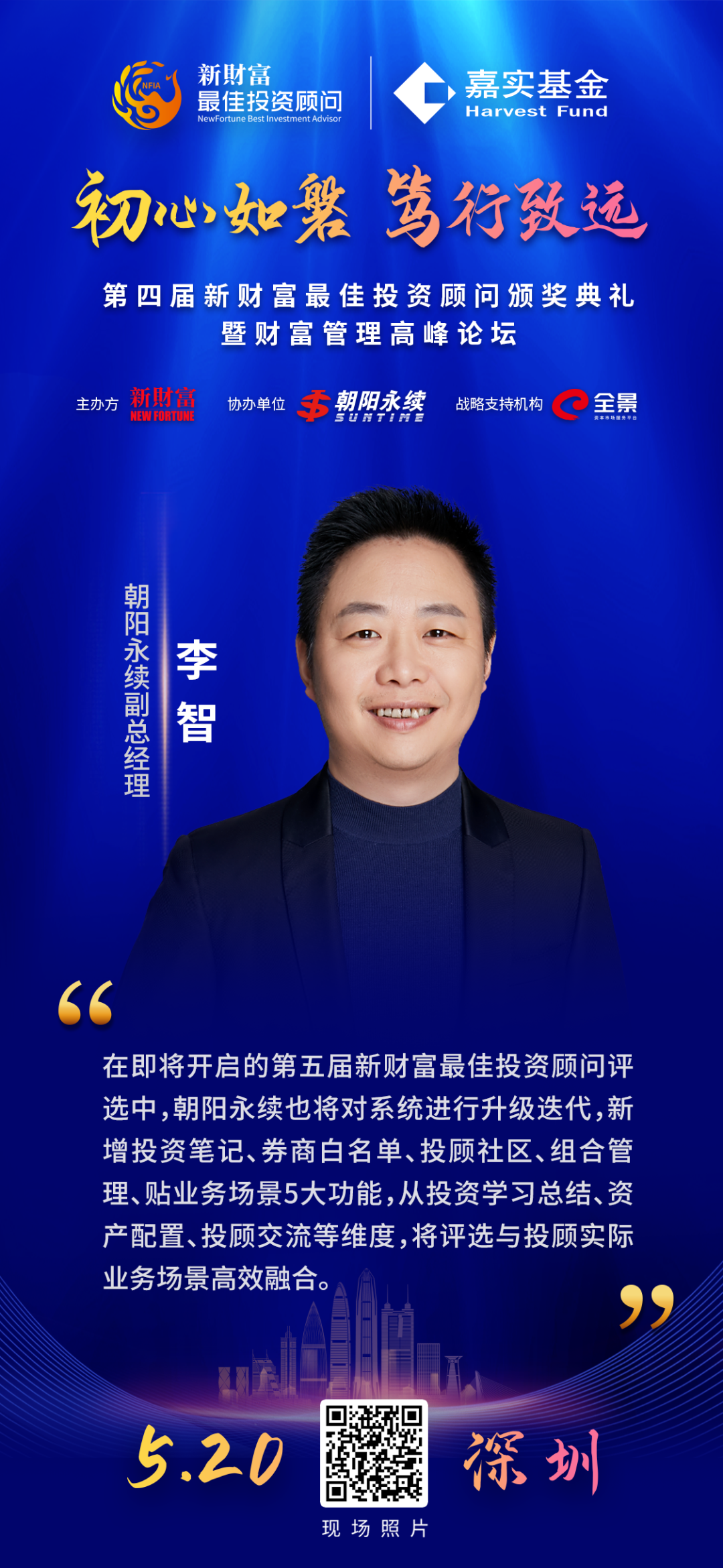 在主题为“评选与业务双向赋能”的演讲中,李智称,在即将开启的第五届新财富最佳投资顾问评选中,朝阳永续也将对系统进行升级迭代,新增投资笔记、券商白名单、投顾社区、组合管理、贴业务场景5大功能,从投资学习总结、资产配置、投顾交流等维度,将评选与投顾实际业务场景高效融合。