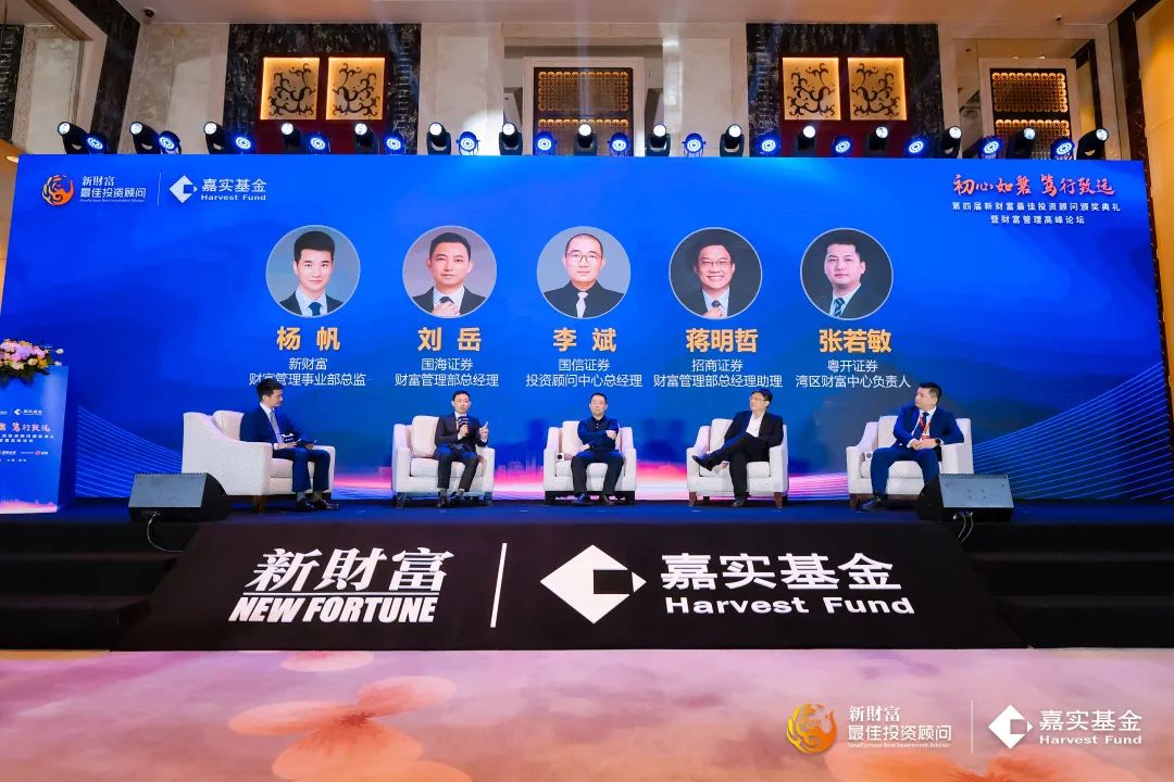 本次会议设有圆桌讨论环节,国海证券财富管理部总经理刘岳、国信证券投资顾问中心总经理李斌、招商证券财富管理部总经理助理蒋明哲、粤开证券湾区财富中心负责人张若敏参与了圆桌讨论,就其在财富管理实践中取得的经验和成果及未来打法,进行了热烈的讨论。