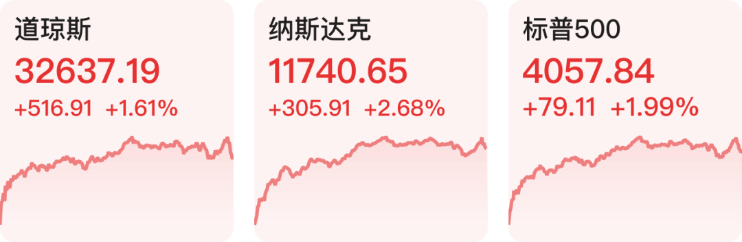 美股三大指数全线收涨,道指涨1.61%,纳指涨2.68%,标普涨1.99%;热门中概股涨幅居前,阿里巴巴涨14.79%,百度涨超14%,拼多多涨超9%,哔哩哔哩涨超8%。