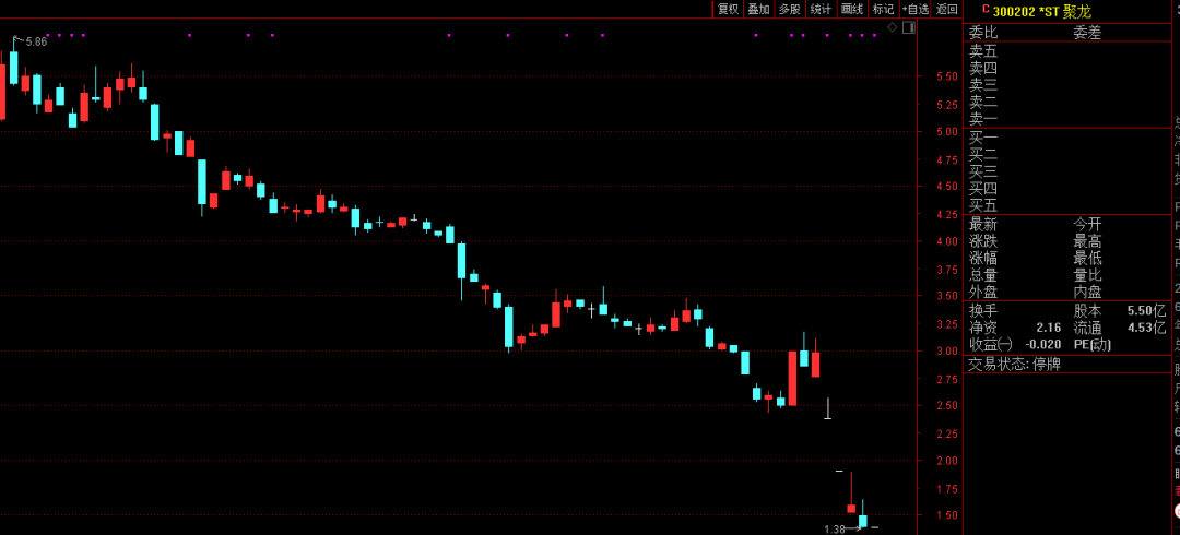 而自4月份以来,*ST聚龙股价已下跌57%,停牌前一交易日收盘价为1.39元/股,当前市值7.6亿元。