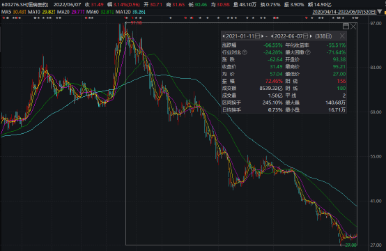 不过,恒瑞医药近年来的股价表现一般,从2021年便开始跌跌不休。截至目前该股已经累计跌超65%。当前股价报31.45元,总市值为2006亿元。