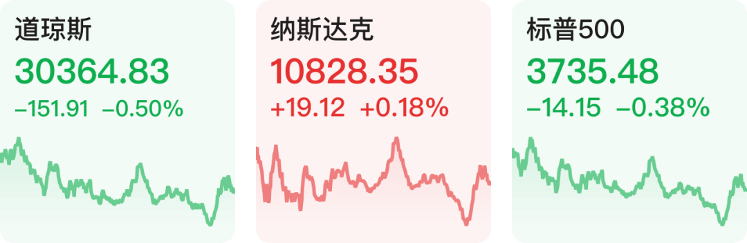 美股三大指数收盘涨跌不一,纳指涨0.18%,道指跌0.5%,标普500指数跌0.38%。热门中概股多数大幅收涨,新东方涨24.39%,蔚来涨16.70%,拼多多涨11.96%,理想汽车涨10.91%,好未来涨9.63%,小鹏汽车涨7.52%,阿里巴巴涨6.81%,百度涨6.76%,京东涨6.08%,腾讯音乐涨4.91%。