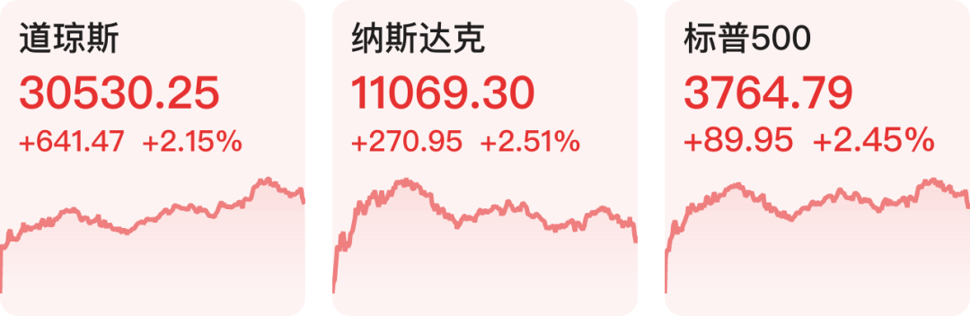 美股三大股指集体收涨,道指涨2.15%,纳指涨2.51%,标普500指数涨2.45%。互联网科技股、半导体、新能源汽车和油气开发板块大幅上涨。特斯拉大涨近10%,苹果涨3.28%,亚马逊涨2.32%,谷歌涨4.11%,微软涨2.46%。应用材料涨近6%,阿斯麦涨4.39%。英国石油涨近5%,雪弗龙涨4.2%。银行股集体上涨,摩根大通涨2.47%,美国银行涨超3%。中概股表现亮眼,富途涨近16%,大全新能源涨14.5%,晶科能源涨超10%,知乎涨8.7%,蔚来涨超9%,理想汽车涨7.8%,小鹏汽车涨6.8%。