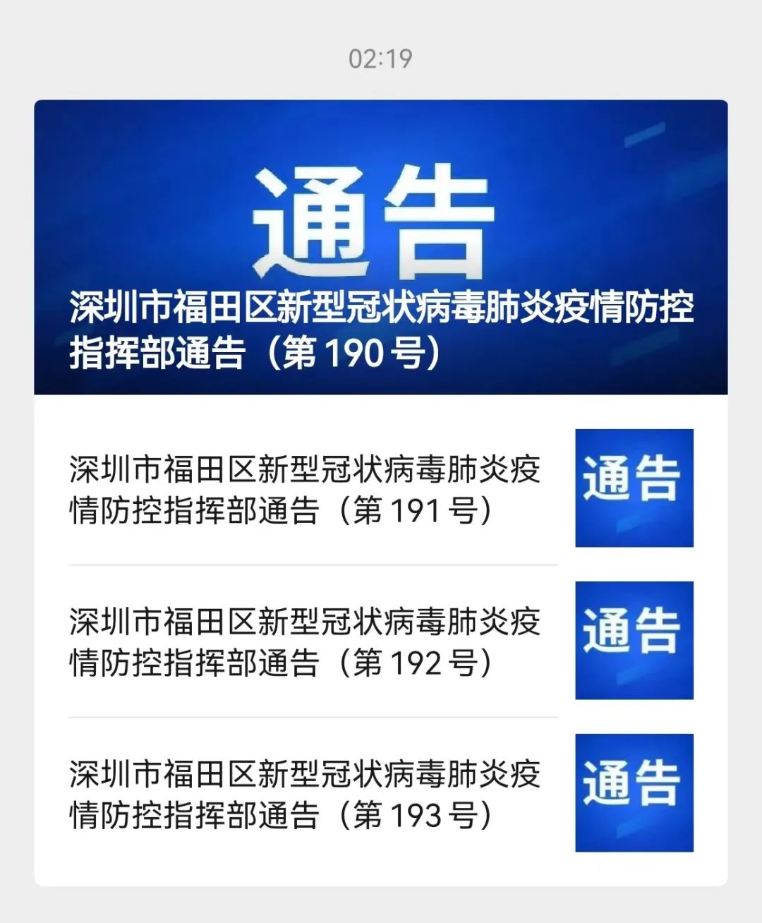 6月25日凌晨2点多,深圳市福田区连发四条通告,多地被划为三区。