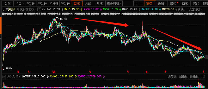 股价方面,开润股份至2018年5月以来持续下跌已经四年,股价从高位的45.48元(前复权)来到最新的15.36元,跌幅超过60%,最新市值仅有36.83亿元,套牢者众。