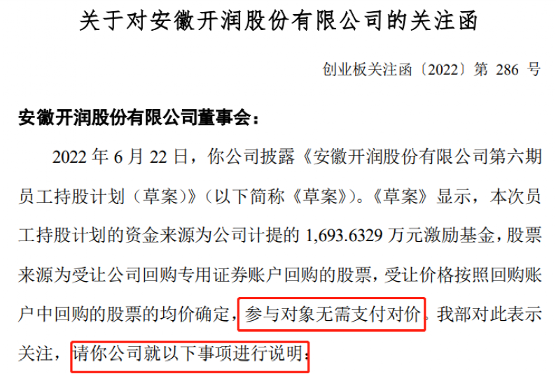 随后在6月25日,深交所给公司发出关注函,要求说明参与对象零对价获得股份是否符合相关规定,是否存在向特定对象利益输送的情形,是否损害公司及股东的利益,业绩考核指标设置是否合理。