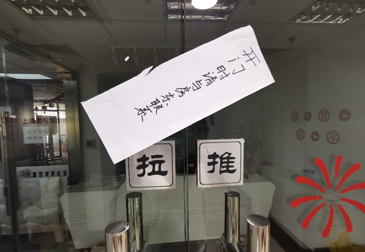 记者走访的多个教学点中,唯一有接待人员的是位于静安大融城商场的教学点。6月25日记者到访时,该教学点也大门紧闭,并无办公人员,但门口贴有通知,提示家长至另一指定位置进行登记。
