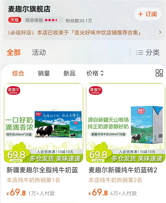 另外,在第三方电商平台有麦趣尔旗舰店。粉丝数量超过20万人。
