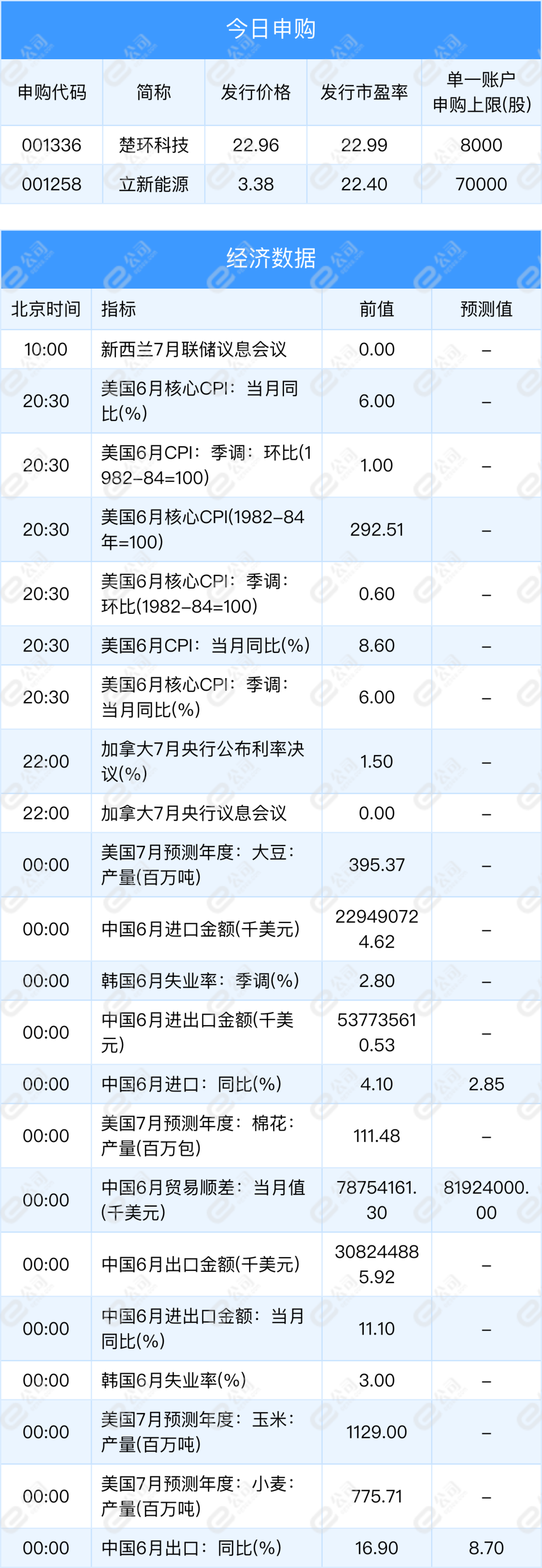 楚环科技、立新能源今日新股申购;习近平向世界互联网大会国际组织成立致贺信;第七批国家药品集采拟中选产品327个,平均降价48%;发改委:在重点工程项目中大力实施以工代赈促进当地群众就业增收;发改委:到2035年基本建成现代化高质量国家公路网;国资委:央企要对前瞻性战略性新兴产业、高科技产业等领域积极开展并购;美股收跌,纳指、标普跌近1%;国际原油期货大幅收跌,美布两油均跌超7%。