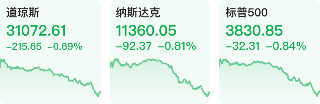 美股三大指数高开低走,纳指跌0.81%。