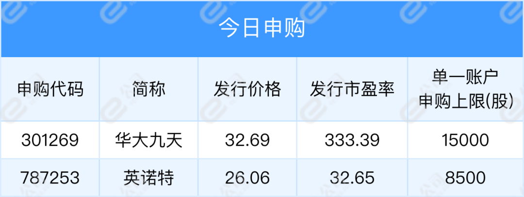 华大九天、英诺特今日新股申购;