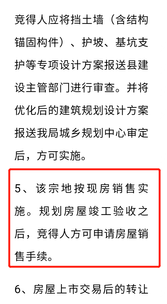 值得注意的是,公告中的一条对参拍企业的建设要求引发业内关注。“该宗地按现房销售实施。规划房屋竣工验收之后,竞得人方可申请房屋销售手续。”