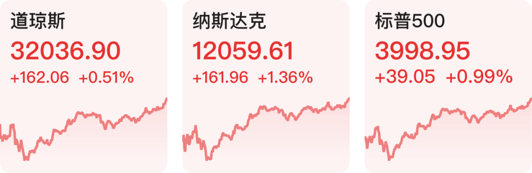 美股三大指数全线上涨。截至收盘,道琼斯指数涨0.51%,纳斯达克指数涨1.36%,标普500指数涨0.99%。美国科技股延续上涨步伐,特斯拉大涨近10%,奈飞涨超3%,苹果、亚马逊涨超1%。半导体板块普涨,阿斯麦涨超5%,联华电子涨逾4%,高通涨超2%。