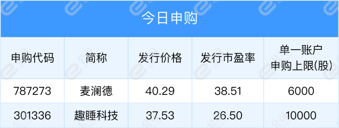 今日可申购麦澜德和趣睡科技; 央行:引导实际贷款利率稳中有降,保持贷款持续平稳增长; 央行:因城施策实施好差别化住房信贷政策; 易会满:以注册制改革为契机 继续全面深化资本市场改革; 国务院关税税则委员会:给予16国98%税目产品零关税待遇; 7月财新中国制造业PMI降至50.4 扩张速度放缓; 三部门印发工业领域碳达峰实施方案; 国家新闻出版署:8月份136款游戏获批 中青宝、游族网络等在列; 7月新能源车销量环比下滑,下半年竞争加剧; 美股三大指数微跌,波音股价涨超6%。