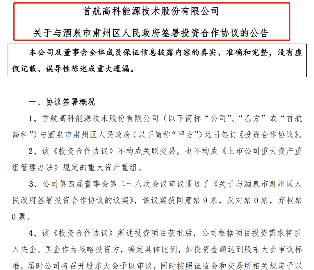 投资项目获批后,首航高科将根据项目投资需求将引入央企、国企作为战略投资方,确定具体比例。首航高科同时称,由于本次投资金额较大,项目资金以及投资方能否按期到位存在一定的不确定性。