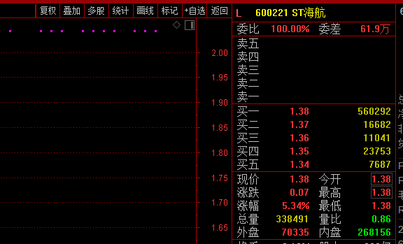 调查结果的披露直接被市场视作“利好”,今日早盘,ST海航一字涨停,现价1.38元/股,当前市值约459亿元。此外,去年同期遭立案的ST海越、ST基础、ST海投虽尚未披露处罚结果,但早盘也均获涨停。