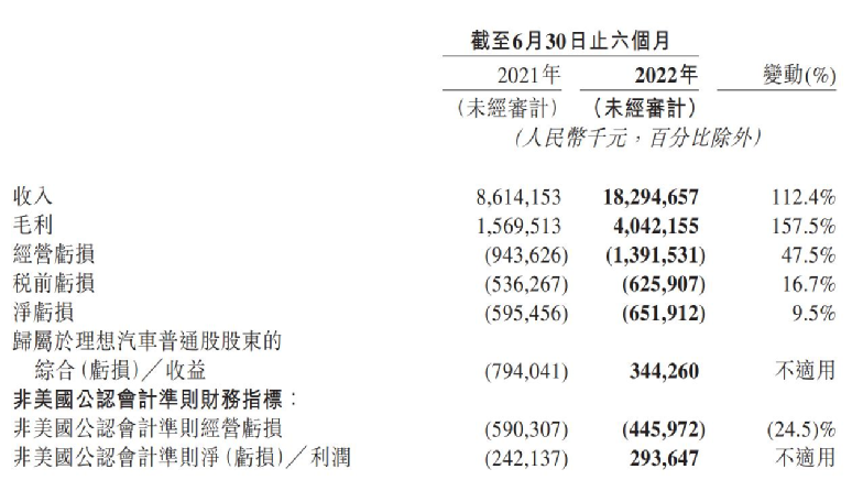尽管营收和毛利率较去年同期增长,但其一直以来的亏损情况并未改善,反而亏损面进一步扩大。数据显示,经营亏损去年上半年为9.44亿元,但今年上半年则增加47.5%至13.9亿元。而上半年归属于理想汽车普通股股东的净亏损为6.29亿元,也同比扩大5.6%。